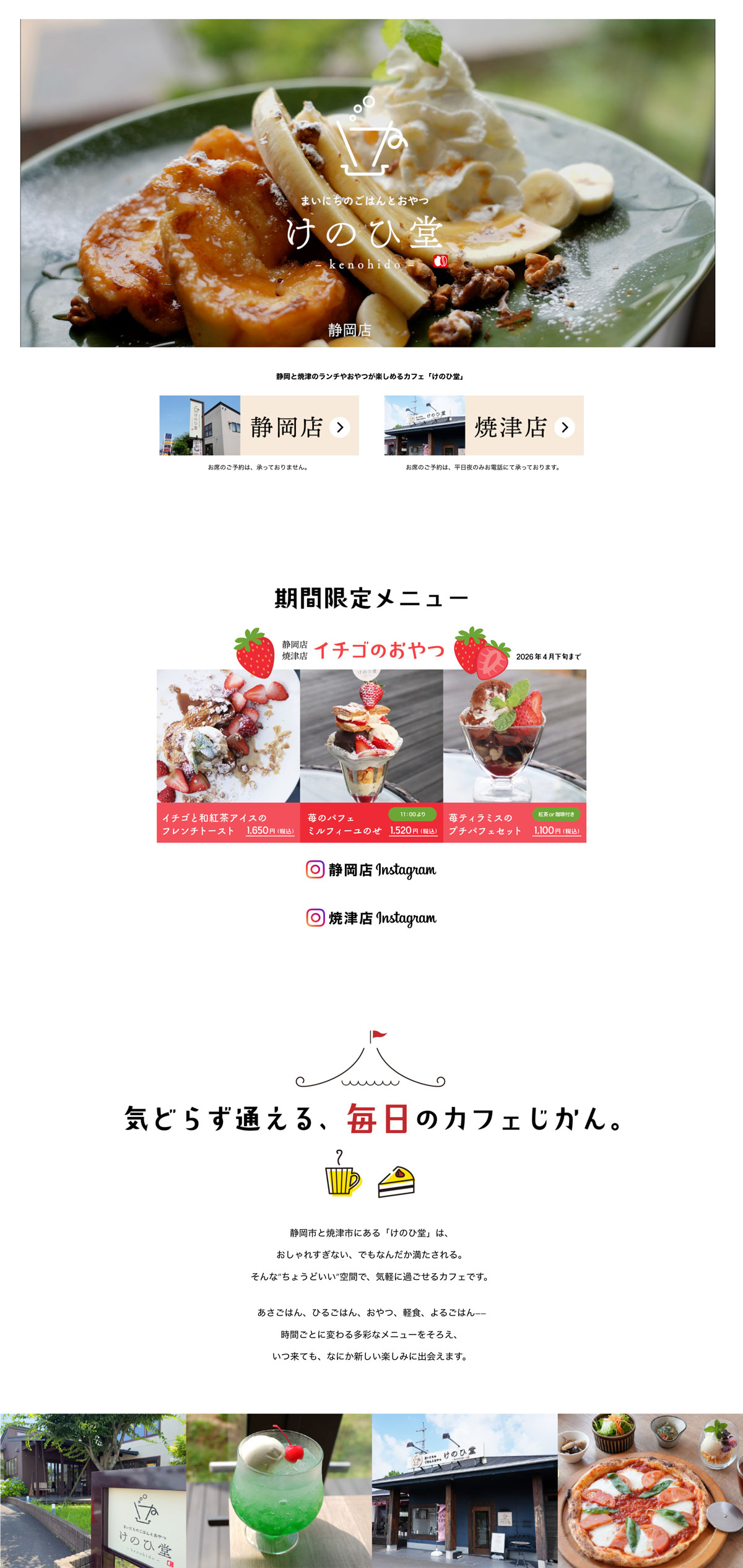 焼津ビジネスマッチングにてご縁をいただきまして、静岡県静岡市・焼津市のカフェ「けのひ堂」様のWebサイトを制作とスライダー部分の写真撮影をさせていただきました。